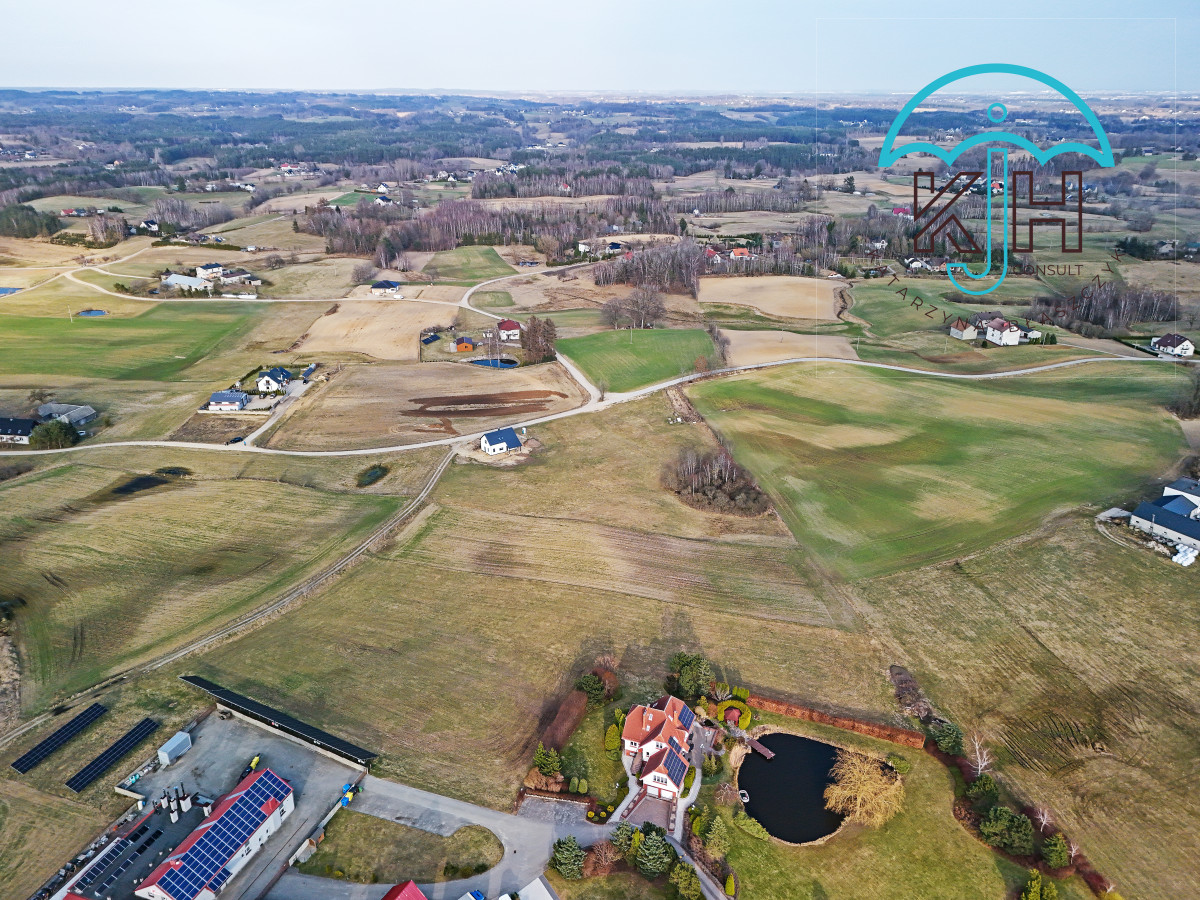 Spokojna i zielona okolica, powstające zabudowania wokół, w miejscowości Barwik w gminie Przodkowo.